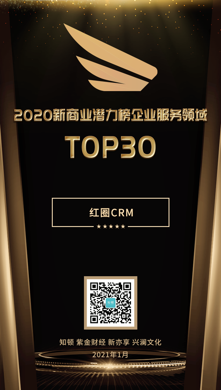 紅圈?CRM?與創(chuàng)始人劉學臣雙雙入選《2020?新商業(yè)潛力榜》