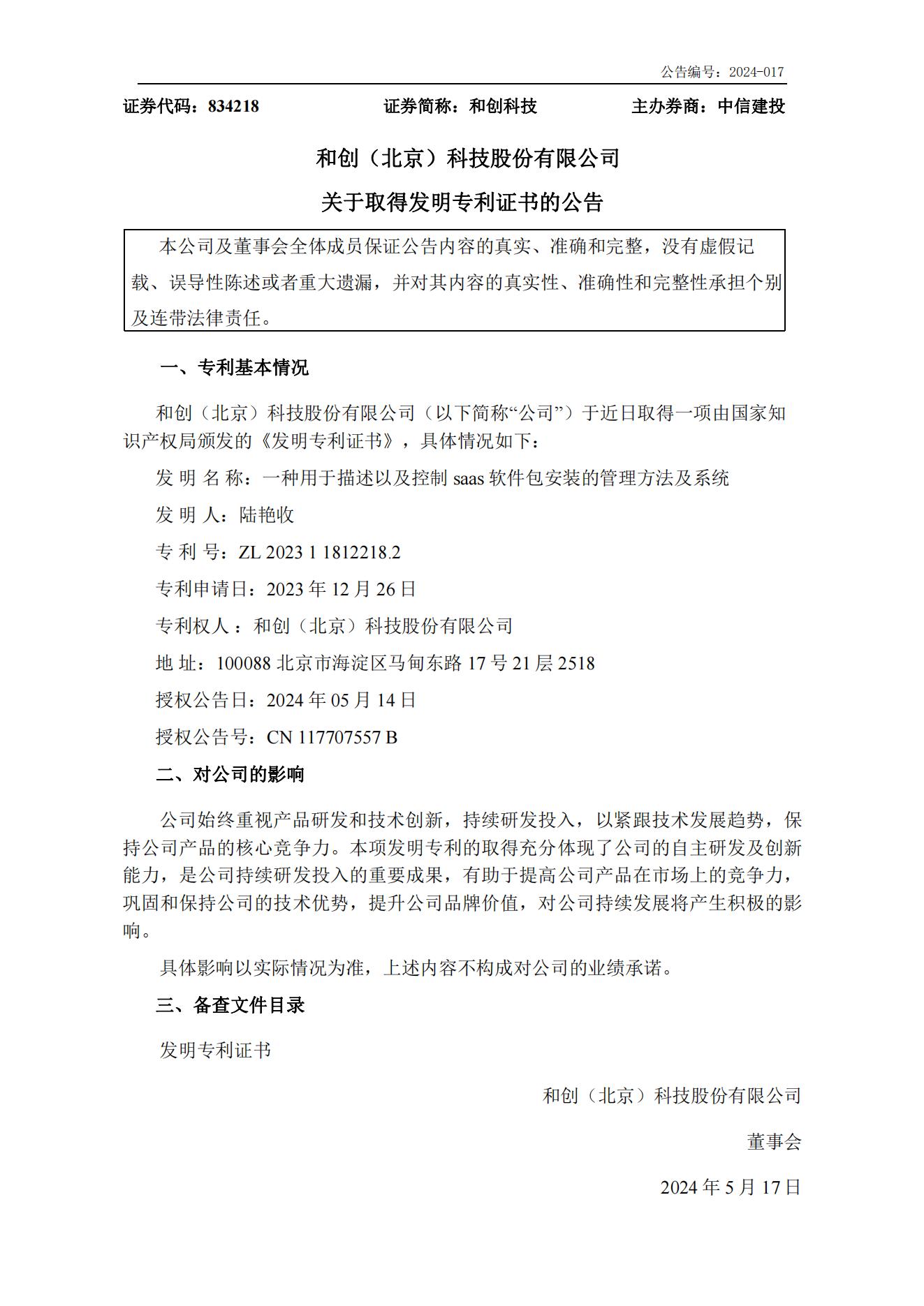 近日,我們又迎來了2024年的第三項發(fā)明專利!發(fā)明名稱為:一種用于描述以及控制saas軟件包安裝的管理方法及系統(tǒng)