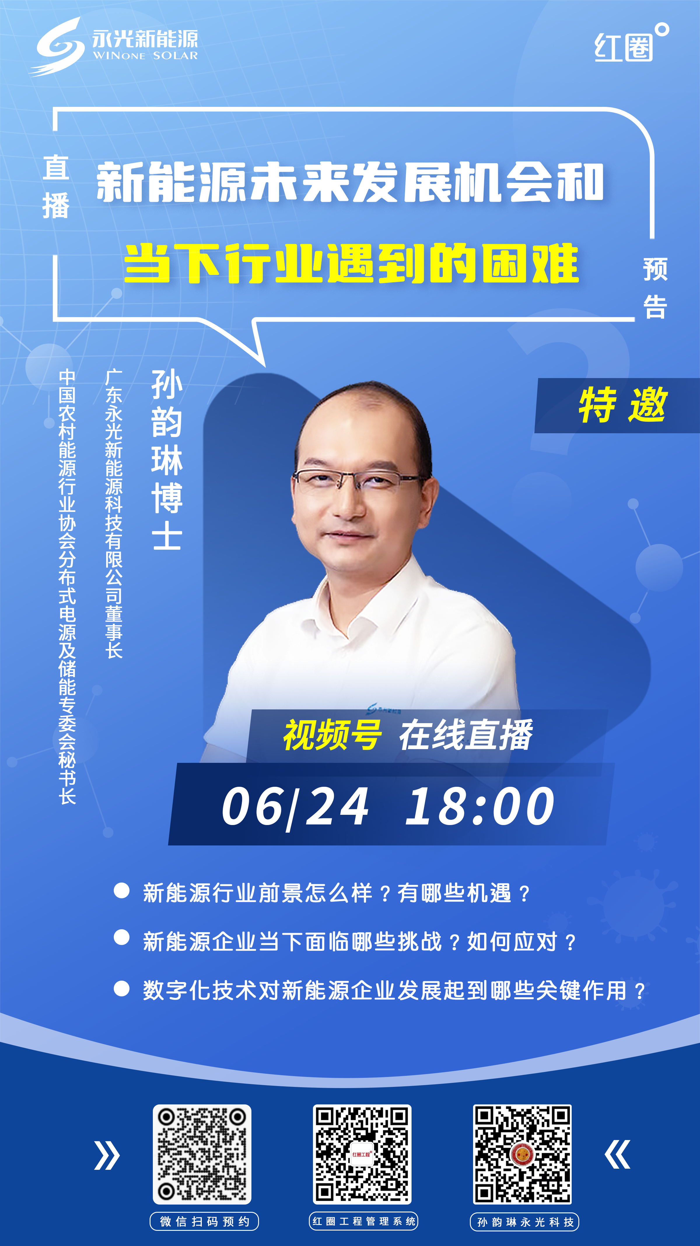 直播平臺:微信視頻號(微信搜索并關(guān)注視頻號“孫韻琳永光科技”、視頻號“紅圈工程管理系統(tǒng)”,同步觀看直播)