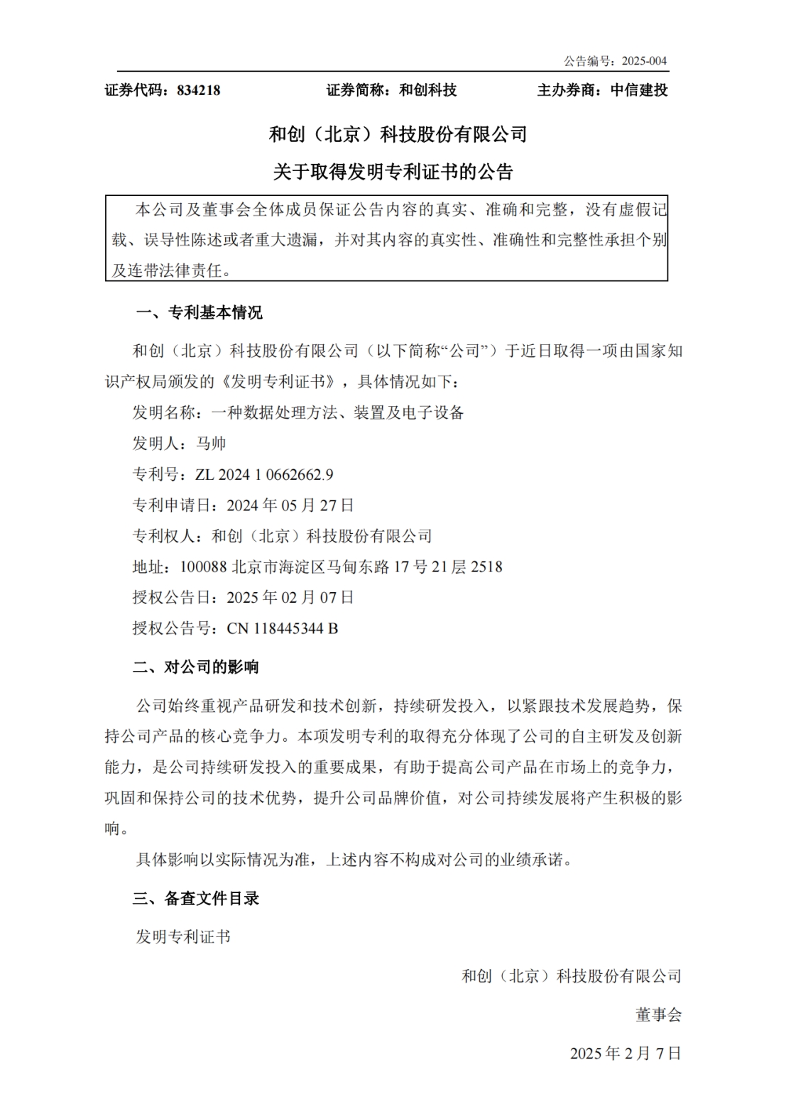 這兩項(xiàng)新專利的獲得,無疑為和創(chuàng)科技的產(chǎn)品線注入了更為強(qiáng)大的競爭力,也為用戶帶來了更為卓越的應(yīng)用體驗(yàn)。和創(chuàng)科技始終堅(jiān)信,科技創(chuàng)新是推動(dòng)企業(yè)高質(zhì)量發(fā)展的核心動(dòng)力。未來,和創(chuàng)科技將繼續(xù)秉承創(chuàng)新精神,不斷探索新技術(shù)、新產(chǎn)品,致力于為企業(yè)提供更加優(yōu)質(zhì)、高效的科技服務(wù),賦能企業(yè)資金管理智慧升級,相信在和創(chuàng)科技的不斷努力下,更多創(chuàng)新成果將不斷涌現(xiàn),為企業(yè)的發(fā)展注入源源不斷的智慧動(dòng)力。