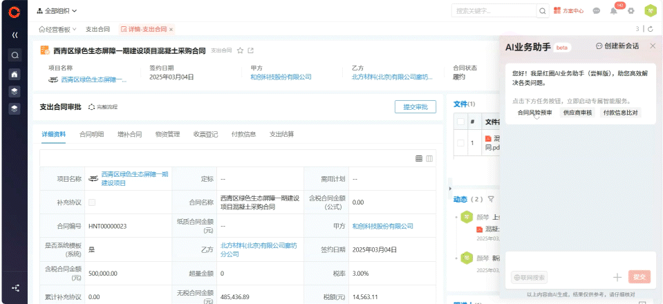 憑借大模型強(qiáng)大的通用智能和推理能力,紅圈AI業(yè)務(wù)助手能夠幫助客戶在供應(yīng)商審核、合同風(fēng)險(xiǎn)評(píng)估、付款管控等諸多領(lǐng)域和場(chǎng)景中持續(xù)改善業(yè)務(wù)流程,強(qiáng)化分析決策能力,提升用戶使用體驗(yàn)。