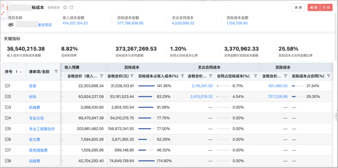 通過(guò)紅圈系統(tǒng),在過(guò)程中可以實(shí)時(shí)看到人、材、機(jī)等各項(xiàng)成本發(fā)生是否合理, 項(xiàng)目利潤(rùn)是否達(dá)預(yù)期,過(guò)程中出現(xiàn)風(fēng)險(xiǎn)能夠及時(shí)解決和控制,后期也可以對(duì)單個(gè)項(xiàng)目去做成本分析。