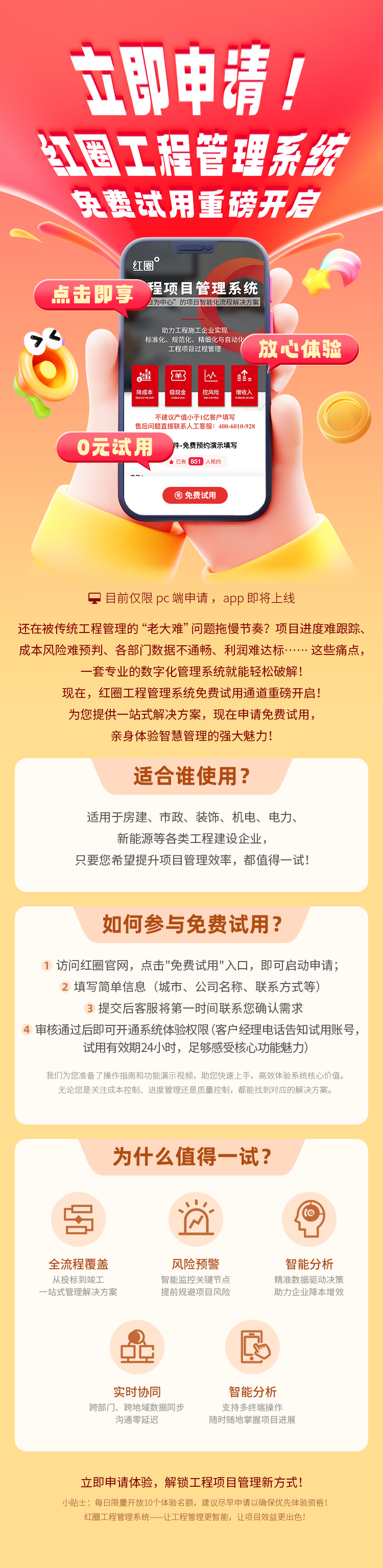 立即申請!紅圈工程管理系統(tǒng)免費試用重磅開啟!