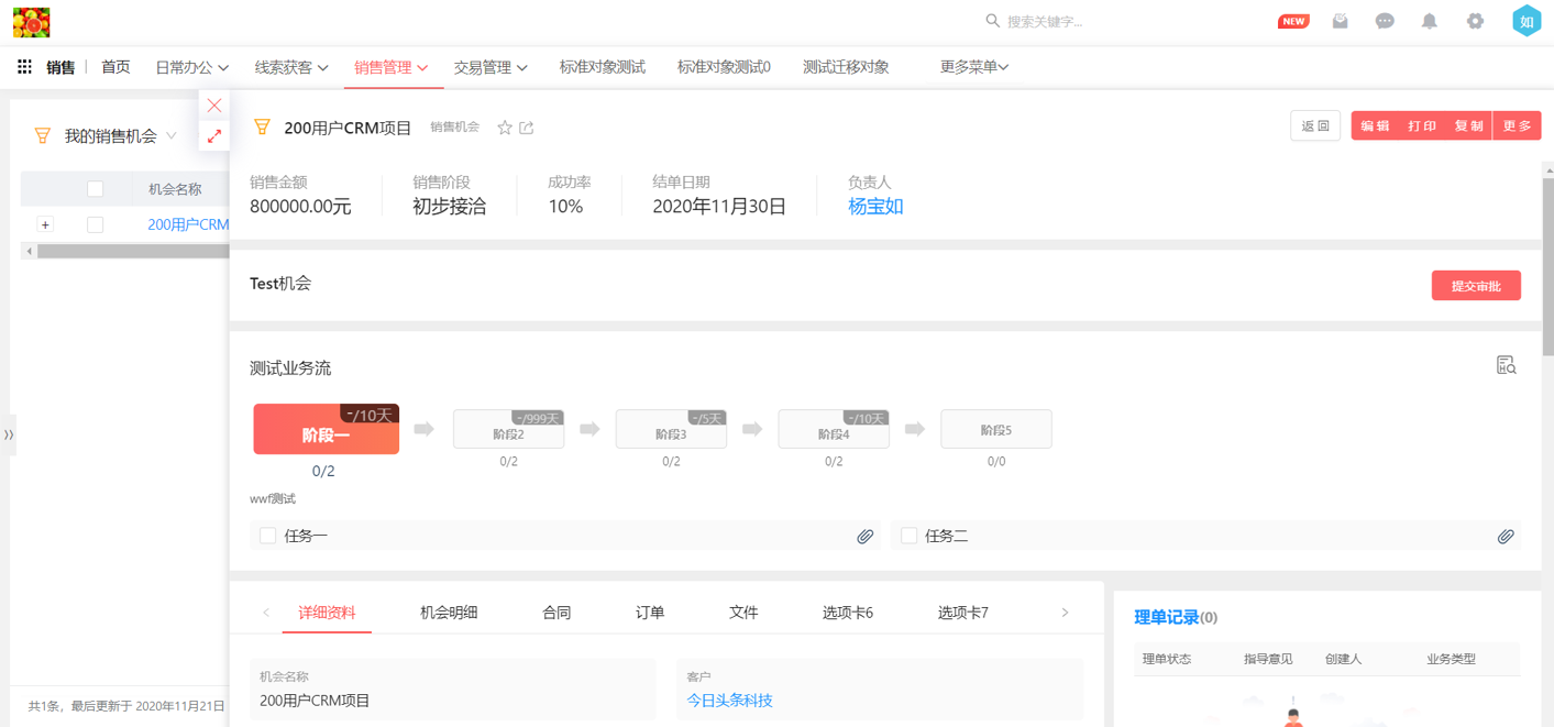 在新版本中業(yè)務(wù)流支持自動流轉(zhuǎn),使業(yè)務(wù)流執(zhí)行起來更加智能高效。通過完成階段定義里的某個任務(wù)自動觸發(fā)階段的流轉(zhuǎn),可以及時提醒員工盡快完成下一階段的任務(wù),用于多人協(xié)作的工作事務(wù)進度管理更有效。
