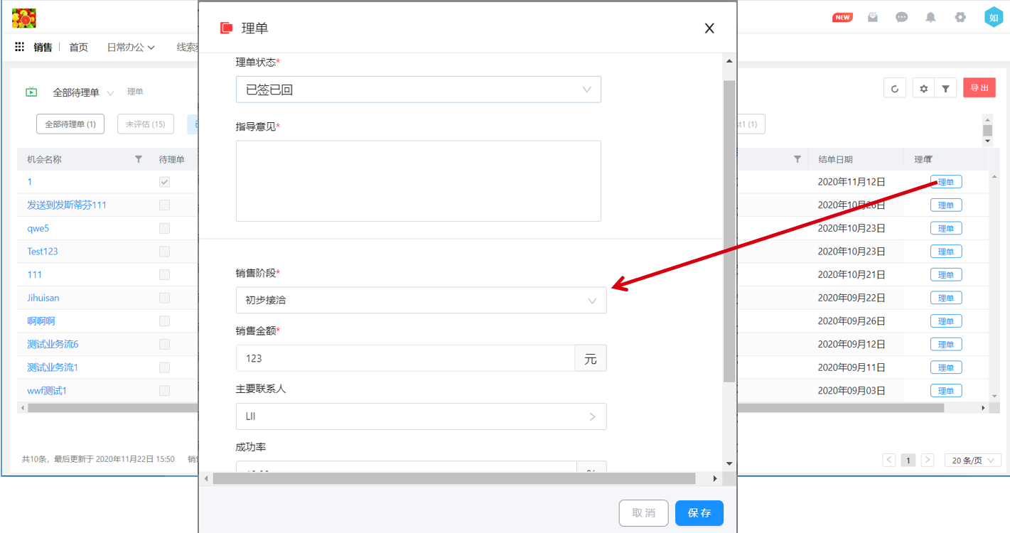 新版的理單功能在理單完成后數(shù)據(jù)不會消失,直接顯示到指定的理單階段,方便管理人員進行查看。理單操作不僅限于負責(zé)人和直屬上級,也可以由其他有權(quán)限的人理單。這樣更高級別的管理人員也可以基于實際情況對銷售人員進行直接的指導(dǎo)。同時,新版本還支持重復(fù)理單,方便管理者對一線銷售人員多次指導(dǎo)。