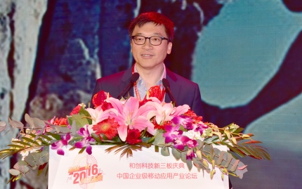 2016中國企業(yè)級移動應用產業(yè)論壇暨和創(chuàng)科技新三板掛牌慶典在北京國家會議中心隆重舉行。復星集團副董事長兼CEO梁信軍、新華都商學院理事長何志毅、東方富海集團董事長陳瑋、阿里釘釘合伙人孔明、和創(chuàng)科技CEO劉學臣等知名企業(yè)領袖、投資機構代表和著名學者出席論壇。