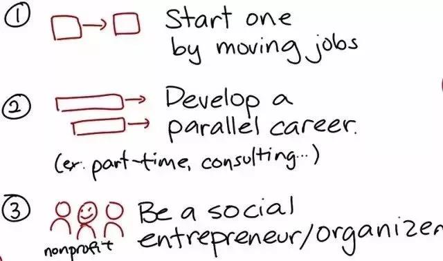許多人的第一職業(yè)十分成功,他們還會(huì)繼續(xù)從事原有工作。除此之外,他們會(huì)開創(chuàng)一項(xiàng)平行的工作,通常是在非營利機(jī)構(gòu)。