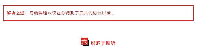 雖然建議偶爾會給銷售帶來機(jī)會,大多數(shù)情況下,需要流程的建議最好在確定了問題,同時也確定了解決方案的時候在進(jìn)行。因?yàn)閷懡ㄗh需要花時間和辛苦,除非你已經(jīng)在銷售過程中,否則這是一個壞的投資。