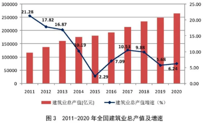 過去的10年、20年,整個建筑行業(yè)經(jīng)歷了一個波瀾壯闊的發(fā)展。2000年全國建筑業(yè)產(chǎn)值1萬億,2020年就達到26.4萬億。