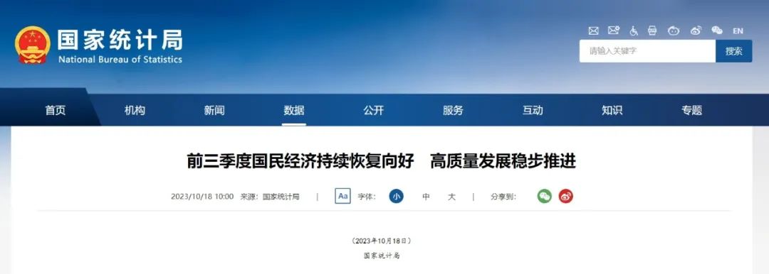 10月18日,國家統(tǒng)計(jì)局發(fā)布2023年三季度國民經(jīng)濟(jì)相關(guān)數(shù)據(jù)。初步核算,前三季度國內(nèi)生產(chǎn)總值913027億元,按不變價(jià)格計(jì)算,同比增長5.2%。建筑業(yè)第三季度總產(chǎn)值23193億元,前三季度60197億元。
