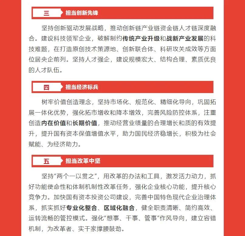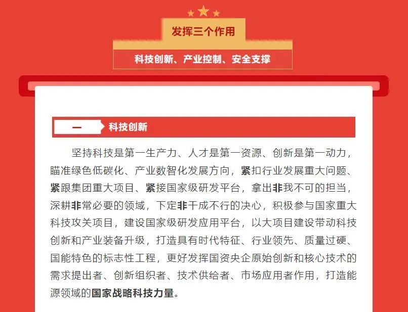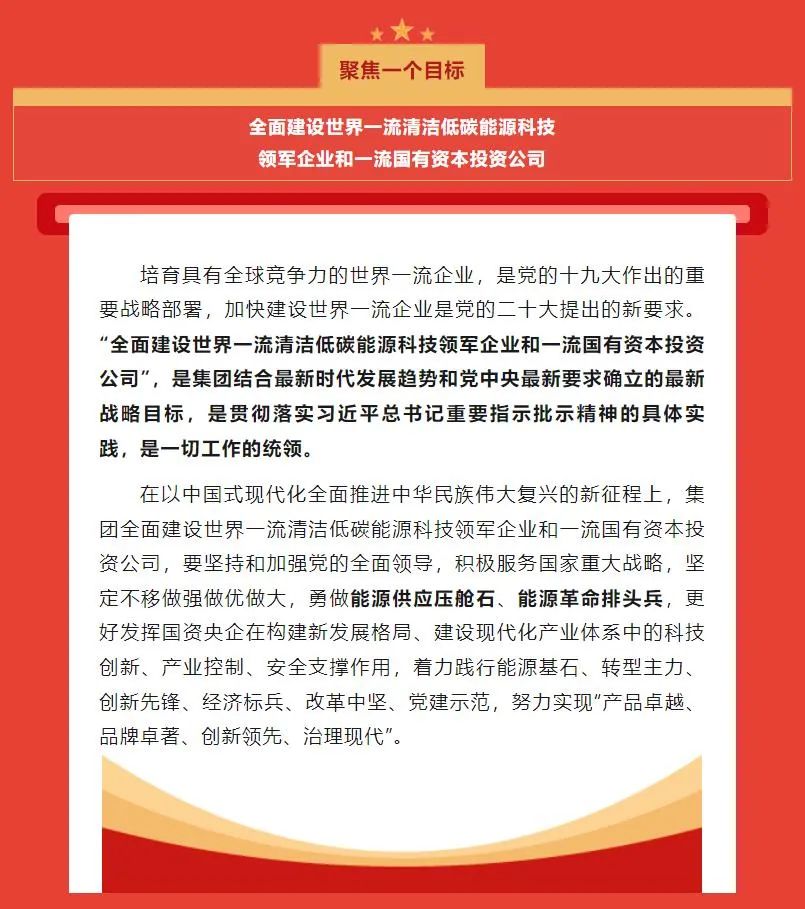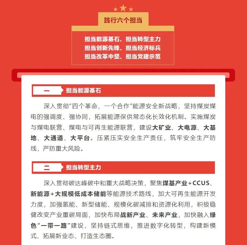 國家能源集團最新確立了“一個目標、三個作用、六個擔當”發(fā)展戰(zhàn)略。一個目標是指“全面建設世界一流清潔低碳能源科技領軍企業(yè)和一流國有資本投資公司”,三個作用是指發(fā)揮科技創(chuàng)新、產業(yè)控制、安全支撐作用,六個擔當是指擔當能源基石、擔當轉型主力、擔當創(chuàng)新先鋒、擔當經濟標兵、擔當改革中堅、擔當黨建示范。