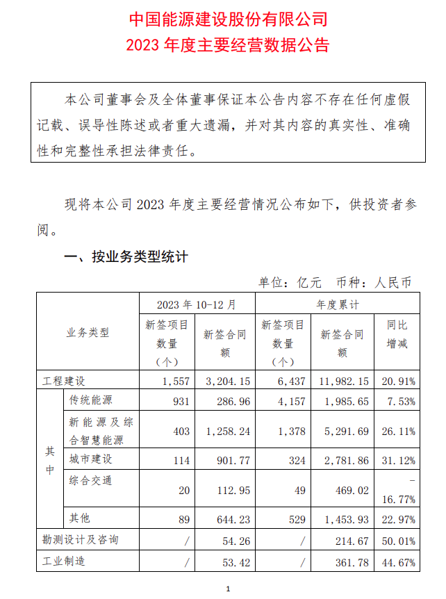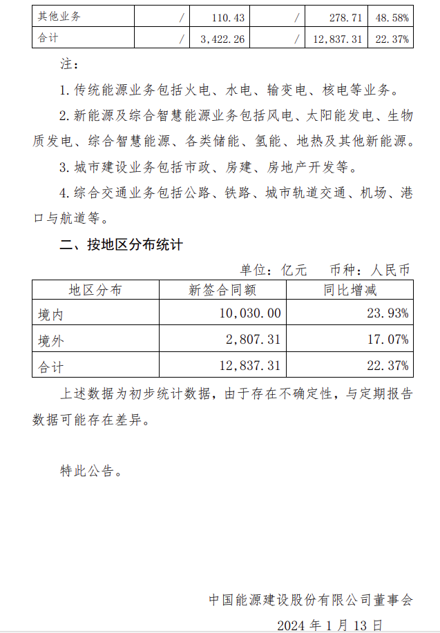 新簽合同額12837.31億!中國能建發(fā)布2023年度主要經(jīng)營數(shù)據(jù)情況