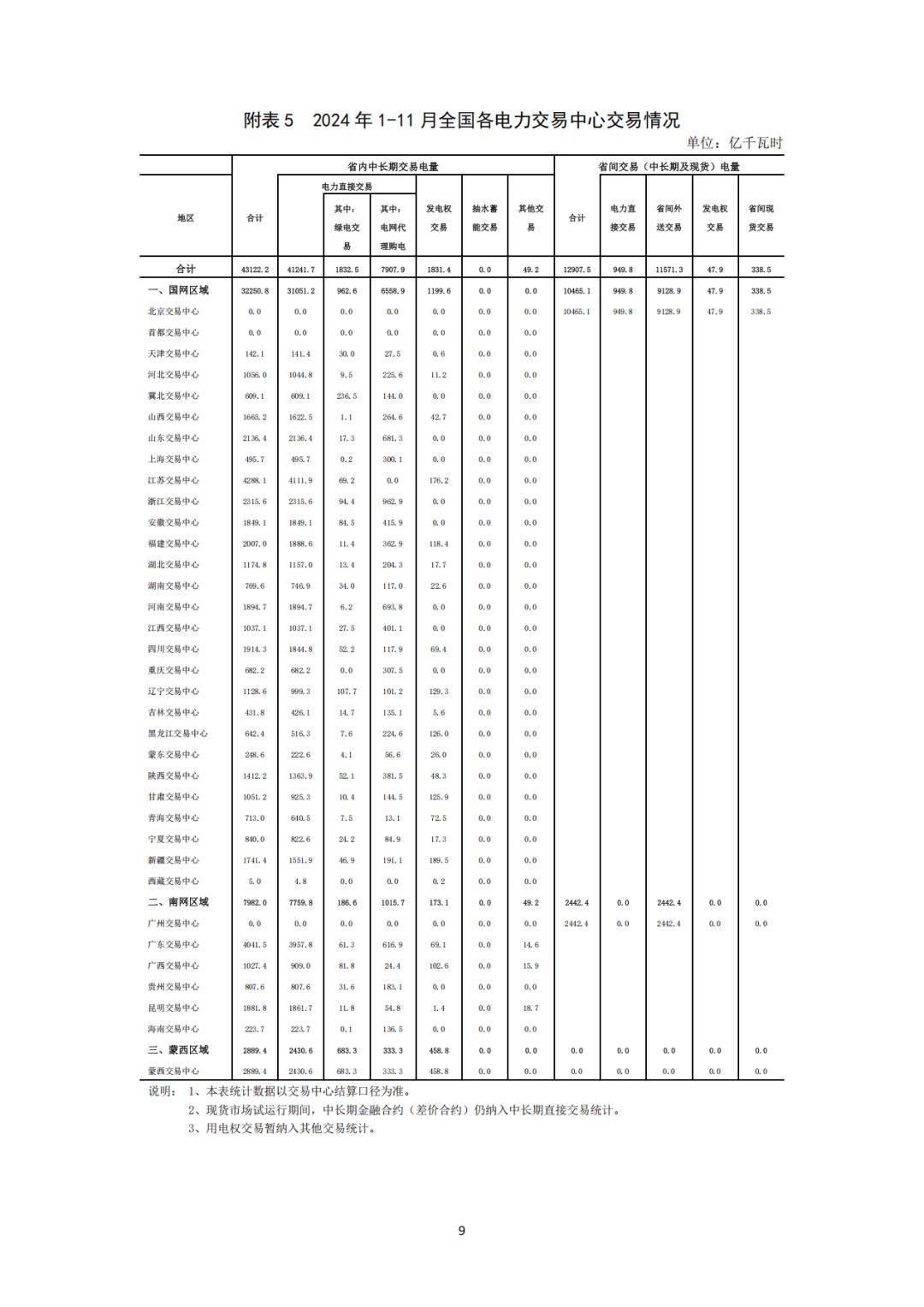 全國電力市場中長期電力直接交易中,1-11月,全國電力市場中長期電力直接交易電量合計為42191.5億千瓦時,同比增長5.7%。其中,省內(nèi)電力直接交易(含綠電、電網(wǎng)代購)電量合計為41241.7億千瓦時,省間電力直接交易(外受)電量合計為949.8億千瓦時。