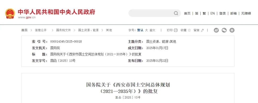 國務院關于《西安市國土空間總體規(guī)劃(2021—2035年)》的批復
