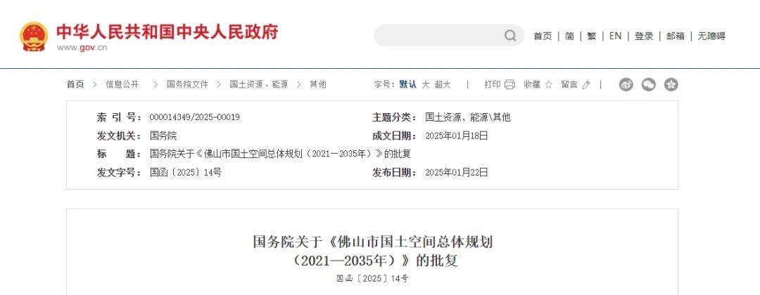 國務院關于《佛山市國土空間總體規(guī)劃(2021—2035年)》的批復