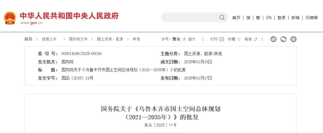 國務院關于《烏魯木齊市國土空間總體規(guī)劃(2021—2035年)》的批復
