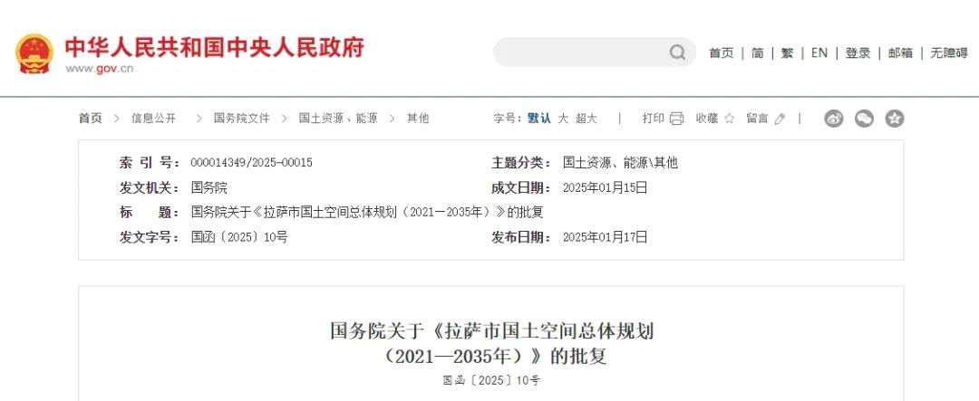 國務院關于《拉薩市國土空間總體規(guī)劃(2021—2035年)》的批復