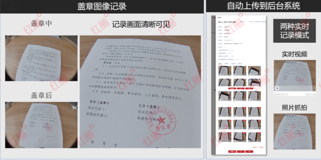 全程監(jiān)控影像留痕:設備內置高清攝像頭,在每次蓋印動作觸發(fā)時,強制對文件內容進行拍照并錄制動態(tài)視頻,完整記錄用印人、用印文件、周邊環(huán)境等信息,所有影像資料實時上傳至云端安全存儲。
