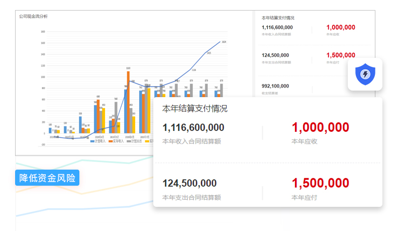 工程項目管理軟件幫助企業(yè)建立了資金科目、計劃及收支管理模型,完善預算編制、審批、監(jiān)督、考核的全面預算控制體系。同時,為項目建立最低余額預警制度,對經(jīng)營活動中出現(xiàn)的現(xiàn)金流短缺風險進行預警,從而降低資金風險。
