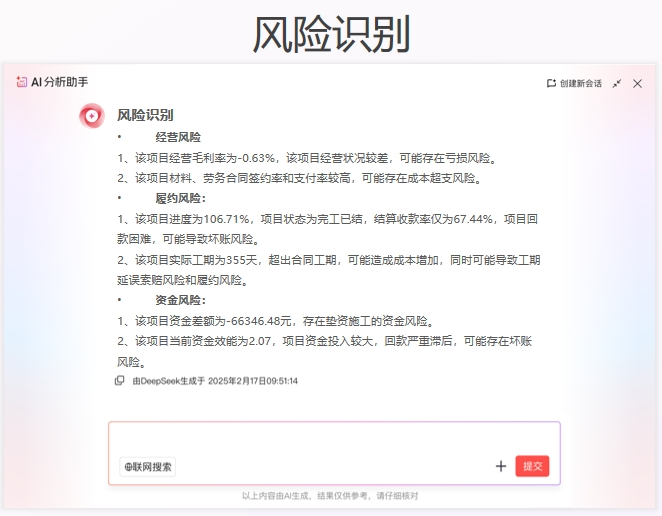 → 預算-采購-執(zhí)行數據自動串聯(lián):動態(tài)利潤偏差快速預警,老板手機實時彈窗提醒(例:“XX項目成本超預算7%,損耗指向材料采購”)