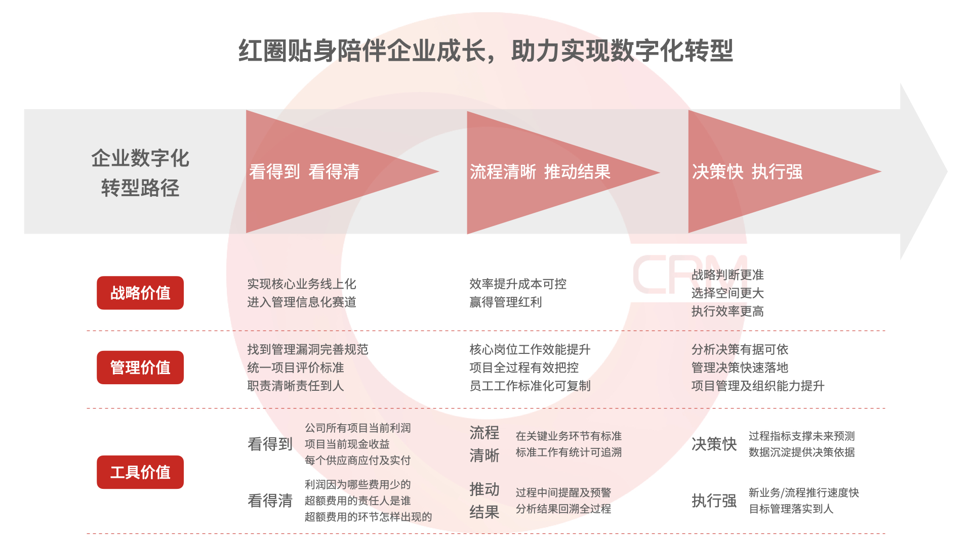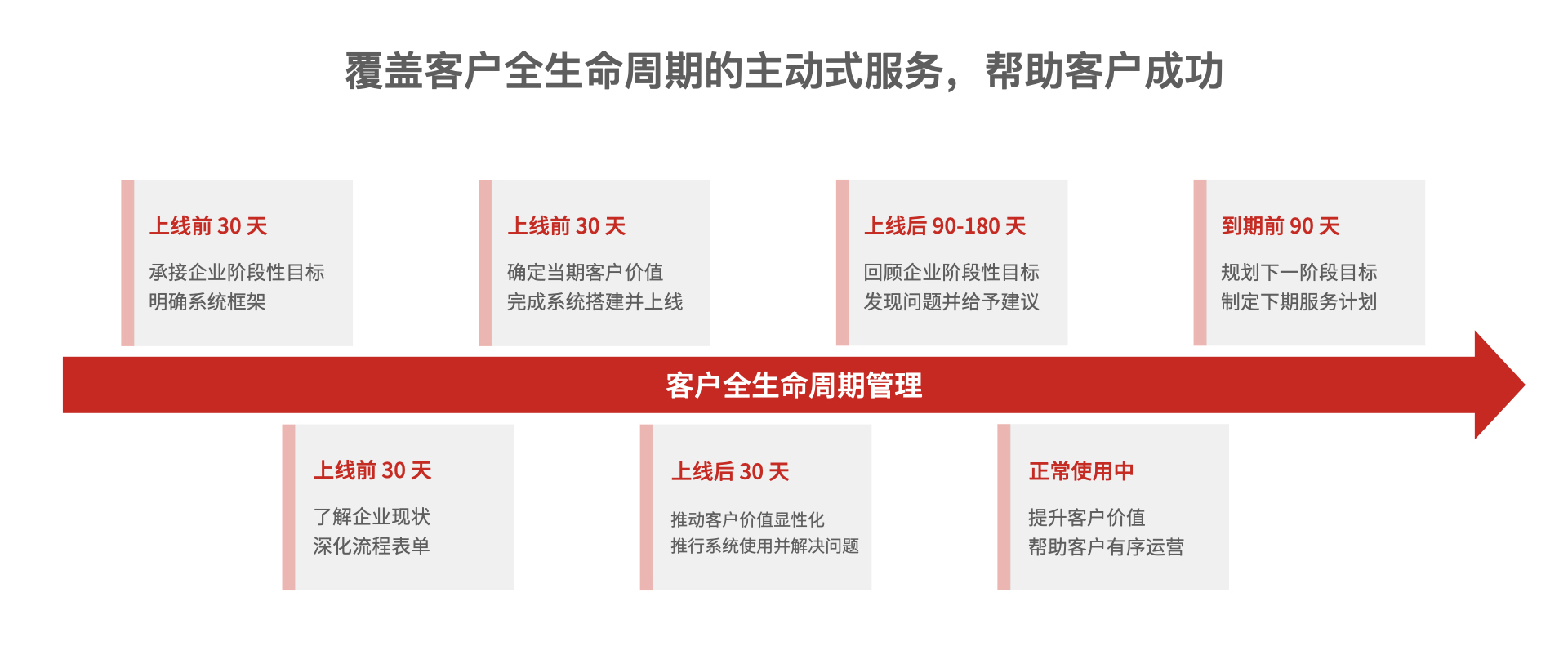 以客戶為中心的全生命周期管理,以 5-10 年企業(yè)經(jīng)營(yíng)目標(biāo)為導(dǎo)向的階段性價(jià)值兌現(xiàn),陪伴企業(yè)成長(zhǎng),助力企業(yè)實(shí)現(xiàn)數(shù)字化轉(zhuǎn)型