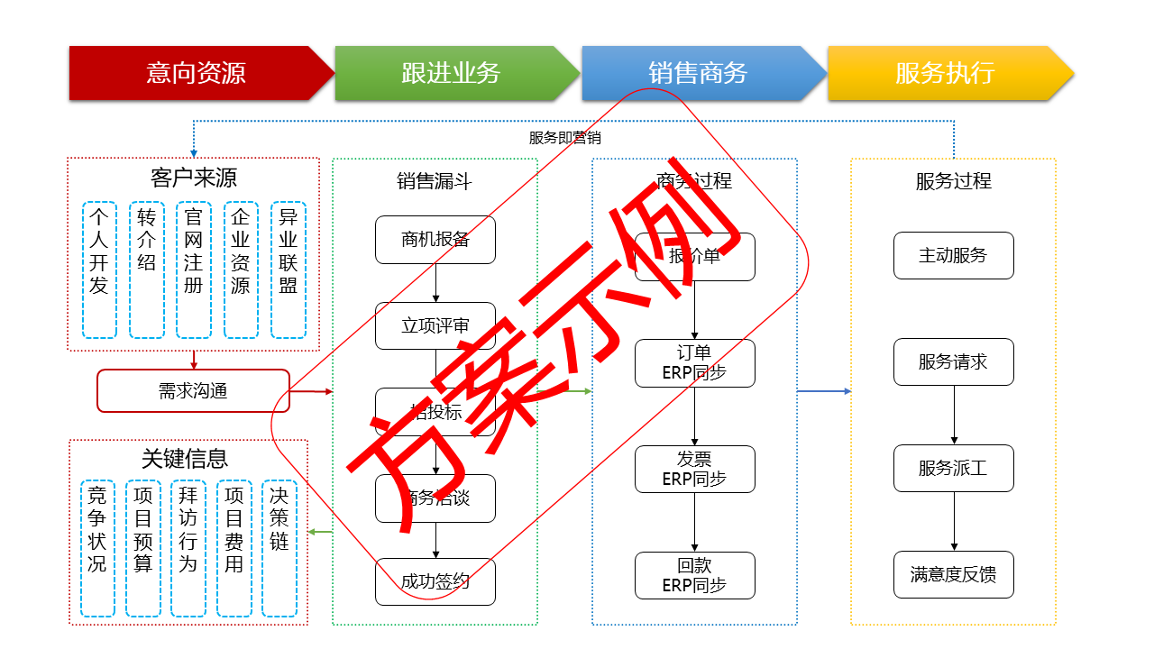 CRM以項目為主線,貫穿整個項目生命周期,協(xié)同管理不同階段的相關(guān)業(yè)務(wù)。將為不同角色提供特定的信息共享和評審功能,對控制點進(jìn)行管理:項目階段按統(tǒng)一的規(guī)范設(shè)置,便于統(tǒng)計分析;項目各階段可以設(shè)置里程碑及提醒與報警功能(可向預(yù)定的管理者報警);在項目過程中,能夠管理合作伙伴與競爭者、項目文檔、項目團(tuán)隊組建(包括權(quán)限管理)、項目計劃。